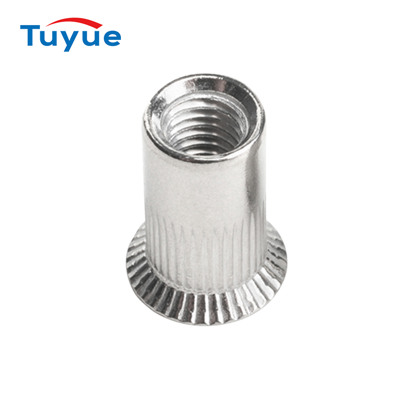 Countersunk head knurled rivet nuts are a specific type of rivet nut with a large countersunk head design and a striped surface. This type of rivet nut is widely used in various industries such as automotive, aviation, shipbuilding, and electrical manufacturing.