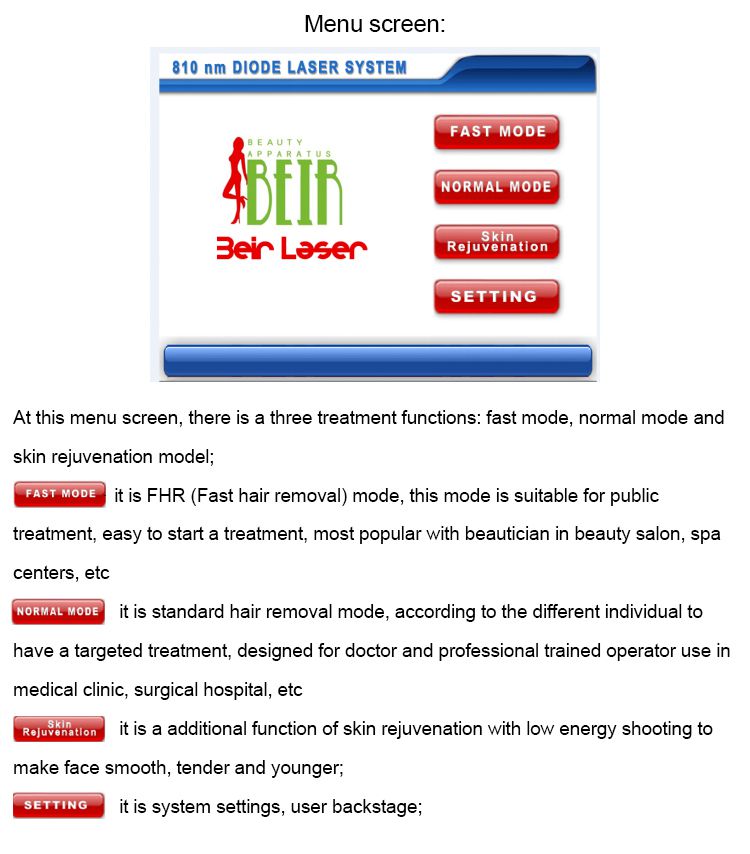808nm diode laser hair removal machine adopts 810nm based on the selective dynamics of light and heat,particular effective to hair melnocytes without injury surrounding tissue.