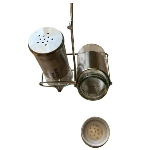 Hot selling 125ml food grade Glass Spice Jars with metal Stand Glass Spice Container and shaker set Glass Storage Jar with Metal holder set