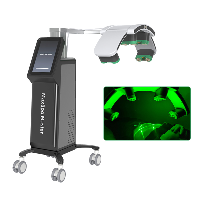 With the 532nm/635nm cold source laser, the 10 adjustable laser lamps target the fat cell beneath the treatment areas, creating a temporary pore within the fat cell, the fatty liquids can drain out of the cell, the volume of the fat cell is reduced. The fatty acids and glycerol will be flushed out naturally though lymphatic metabolism.