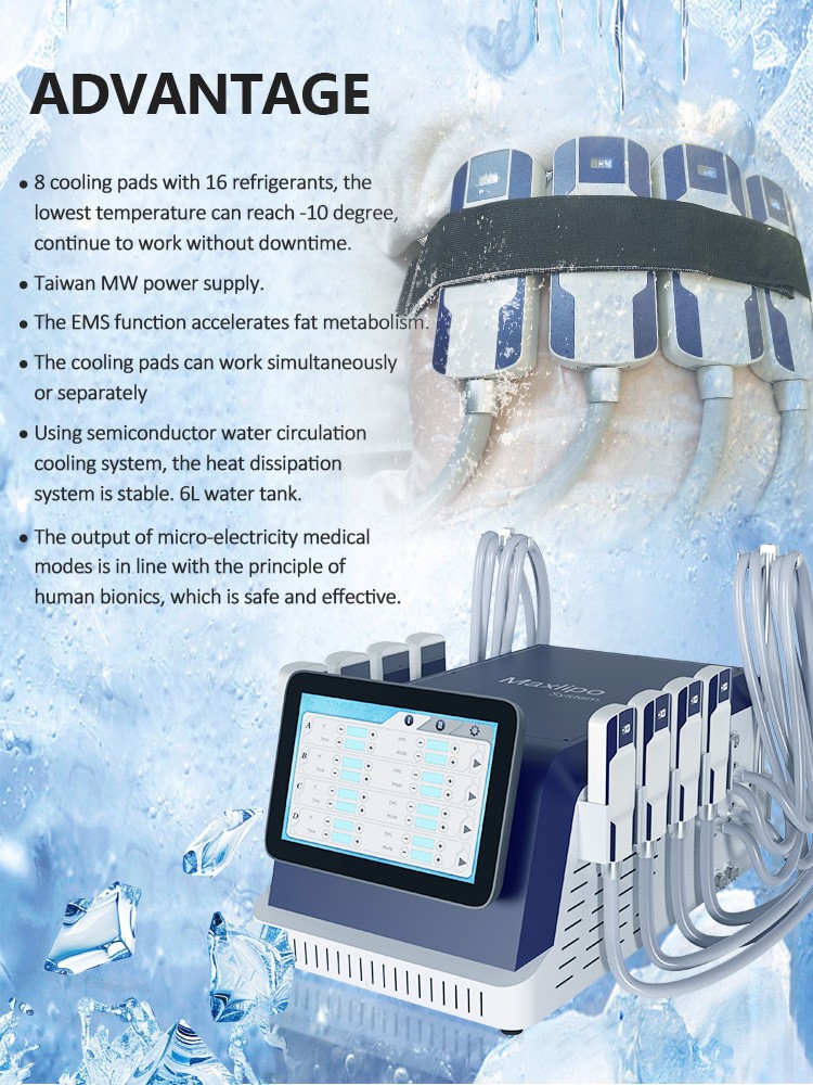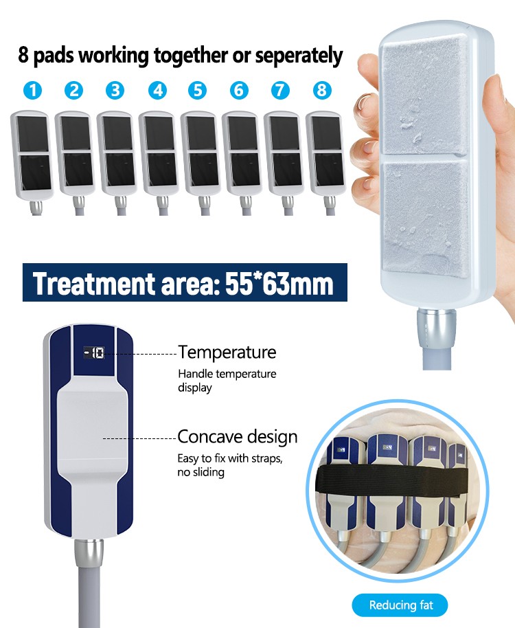 No Pain Non-Invasive 8PCS Cool Pad for Heavy Fat Loss Thighs Slimming Cryo Machine Fat Freezing
