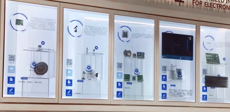 Compared to traditional display cabinets, Rui Guan OLED transparent screen display cabinets have multiple advantages. Its innovative design and application of high-tech materials make the display effect more visually impactful. Secondly, the use of transparent screens provides viewers with a clear viewing experience, making the exhibits more attractive. In addition, the interactive function of the display cabinet also brings a new visiting experience to the audience, increasing the fun of the exhibits.