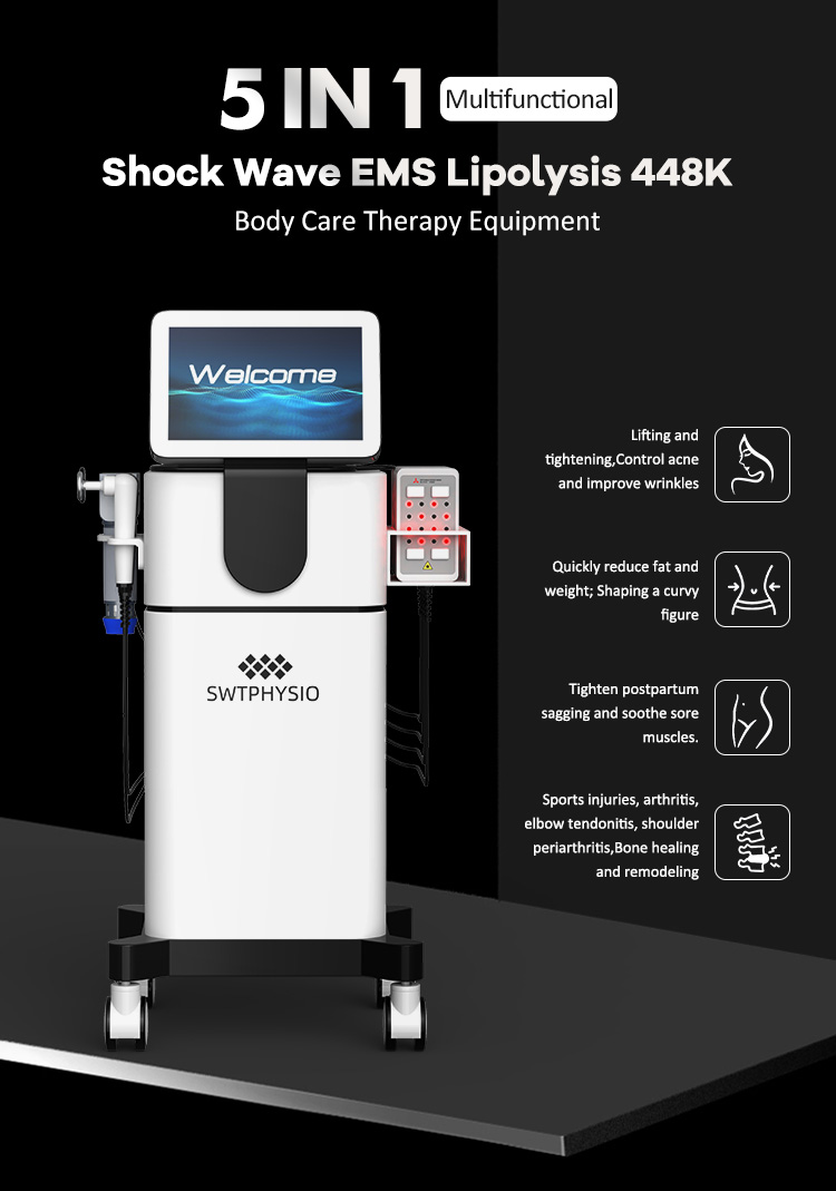 Electromagnetic Shockwave Therapy ED 448kHz Cet Ret RF Tecar Therapy Machine with EMS Lipolaser Slimming Machine