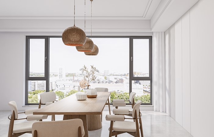 Glass | 5G+18A+5G Low-E / 5G+112A+5G+12A+5G Low-E | Aluminum Extrusion | European ultra-premium standard; alloy 6060-T6; sandblasting pre-treatment + powder coating finish |